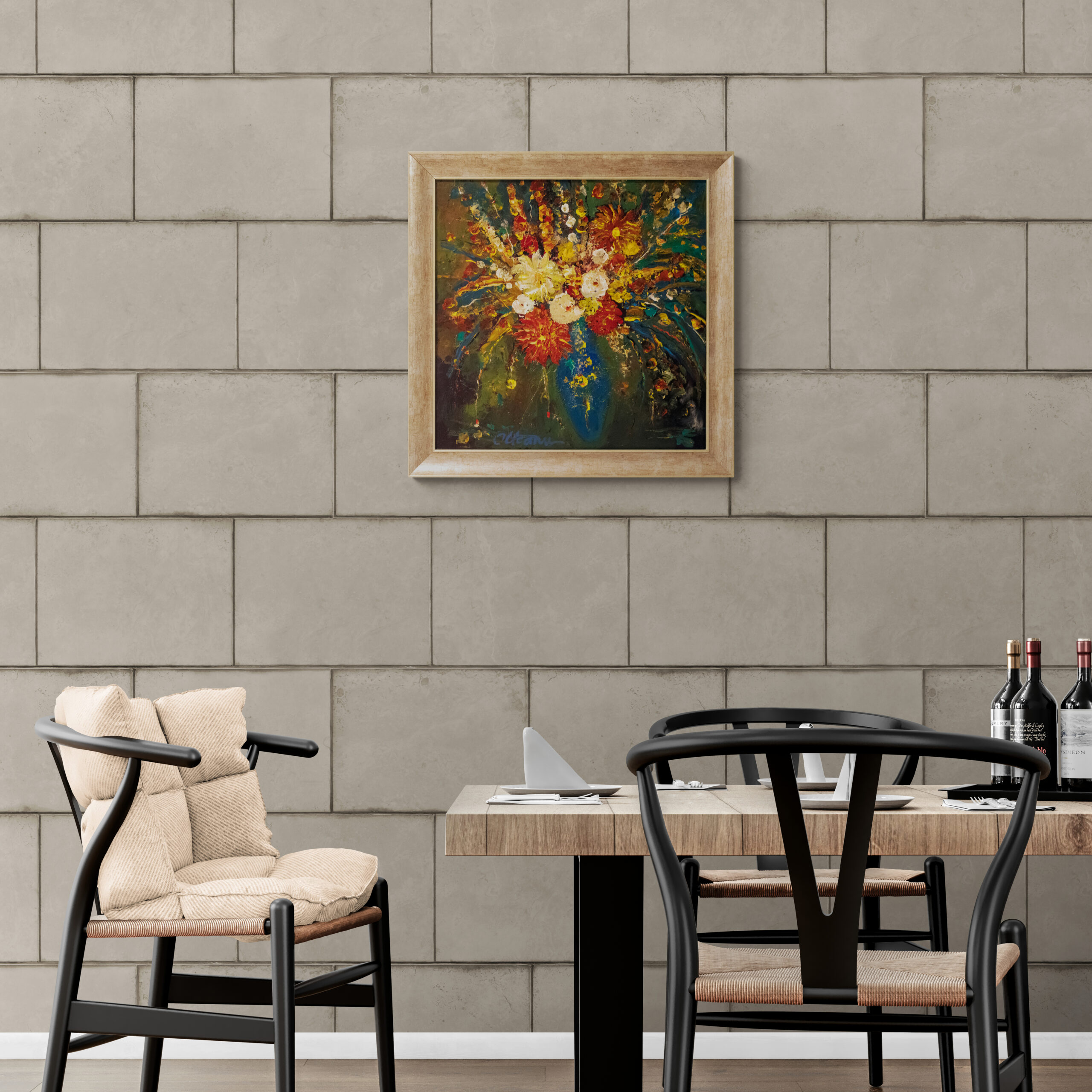 I painted this bouquet as if it were not contained by the vase, but rather escaping it. The blue vessel is only a pretext, a stage for an energy that cannot be confined. While working, I felt as though each flower burst into flame — not a gentle bloom, but a passionate declaration. It is a reminder that beauty is not always serene; sometimes, it roars.