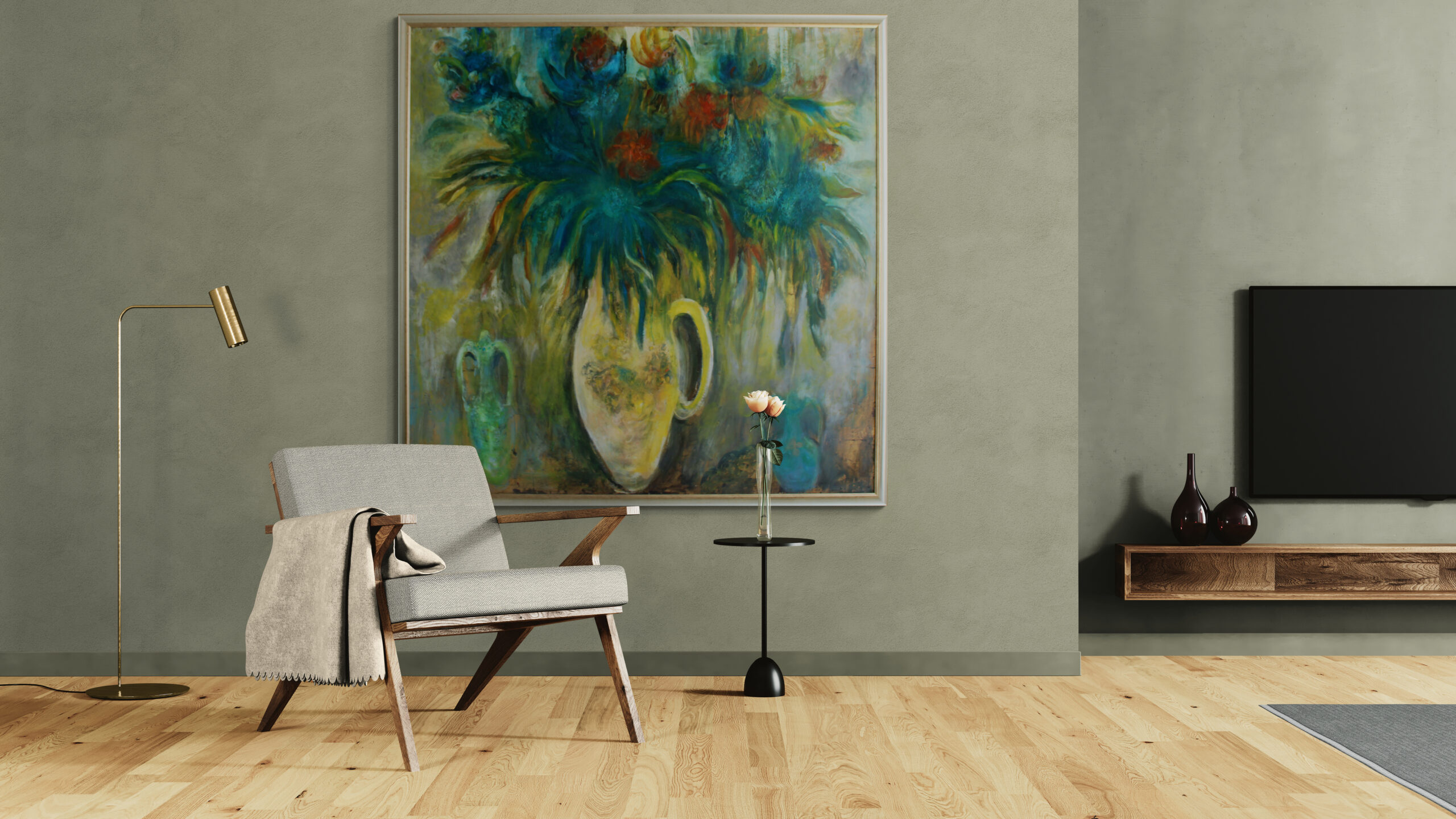 Această lucrare monumentală reunește esența stilului Olteanu: forță gestuală, rafinament cromatic și o dimensiune metafizică profundă, specifică operei sale mature.