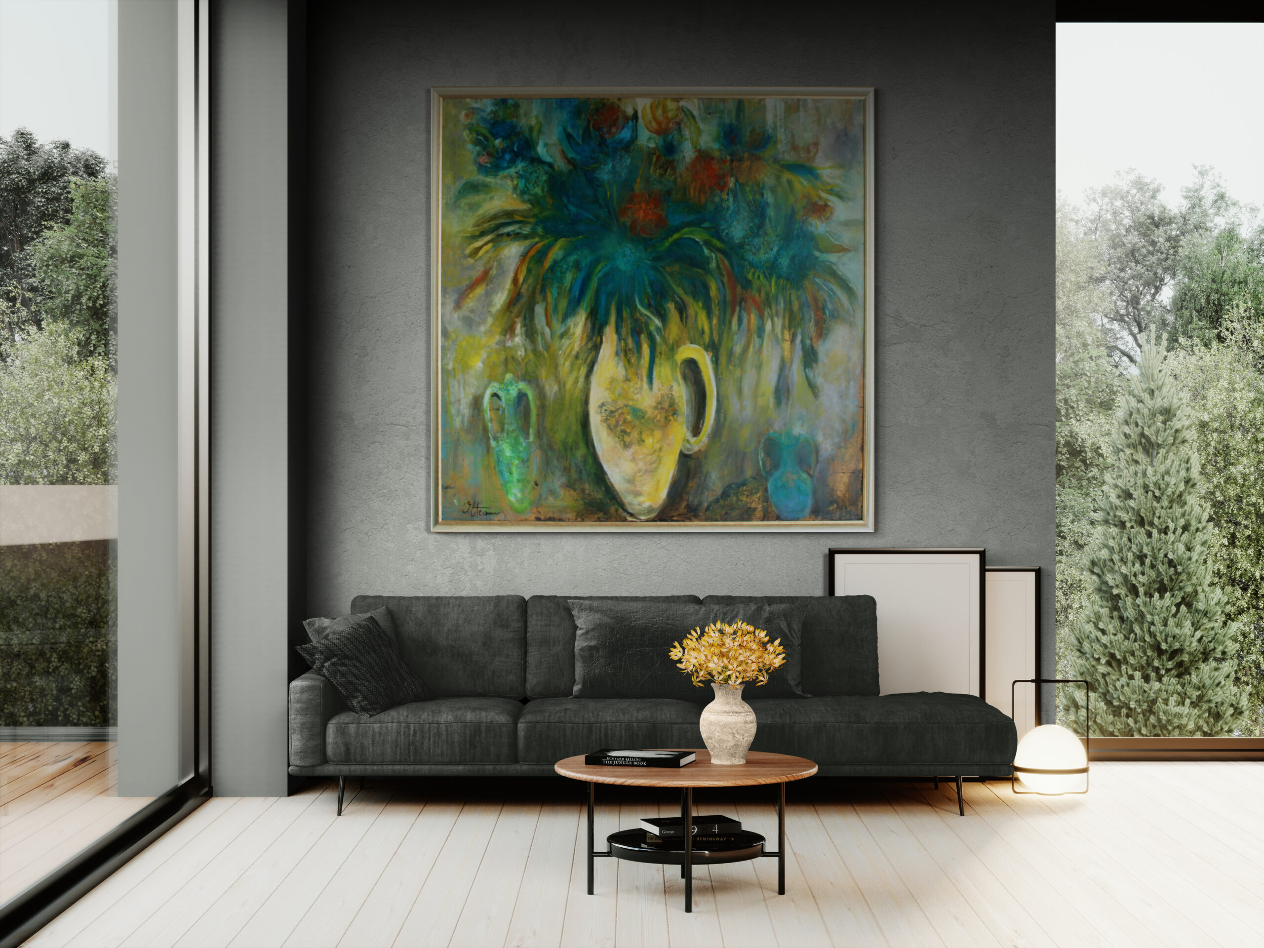 Cele trei vase par să fie ființe arhetipale, gardieni ai unei energii fertile, prin care natura se regenerează. În compoziție se simte o tăcere vastă, un spațiu al meditației și al armoniei, unde culoarea respiră singură.