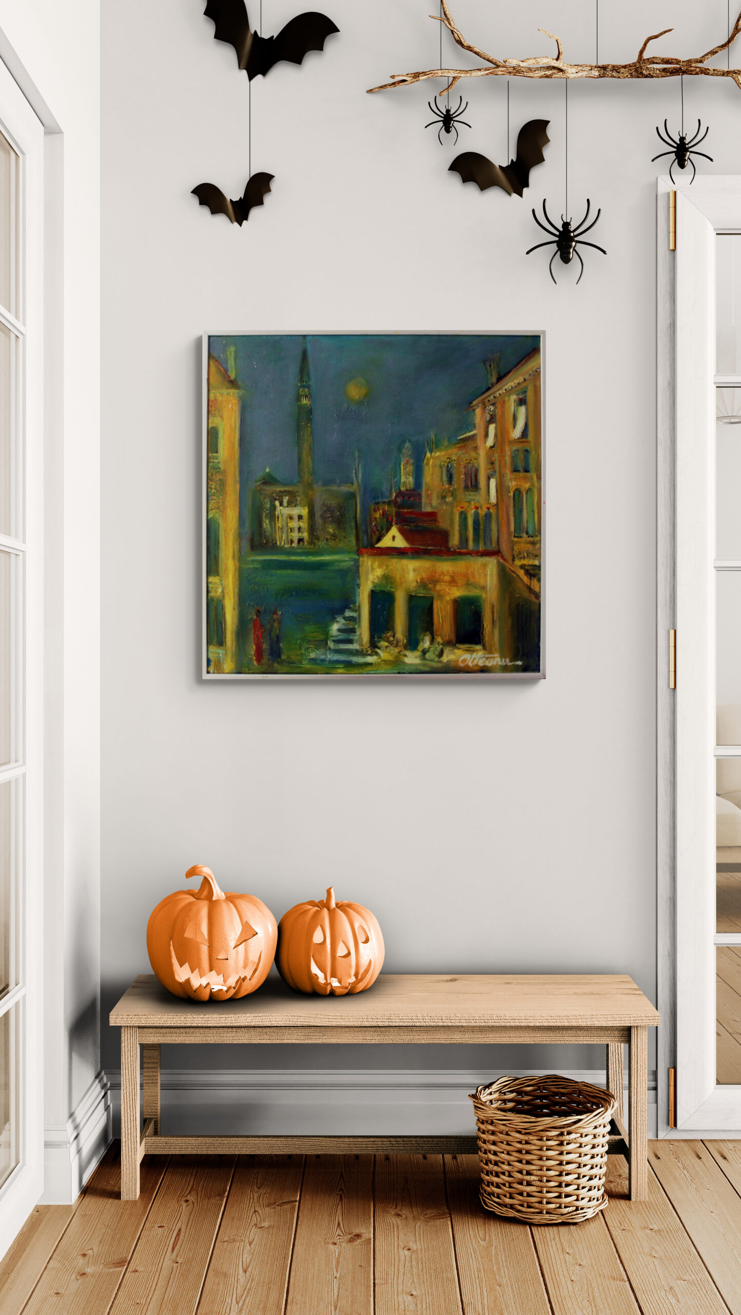 When I painted this nocturne, I wanted to reveal Venice not in its brightness, but in its silence. The night allowed me to see the city differently — its buildings no longer shouting with color, but whispering through shadow and light. The moon was not just a source of illumination, but a companion, casting its quiet presence over stone and water. For me, this canvas is a love letter to Venice at night — fragile, timeless, and infinitely tender.